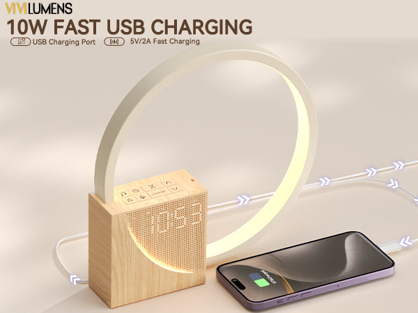 Designed to support a peaceful morning routine, it also features a built-in USB charging port to keep your essentials powered right by your bedside.